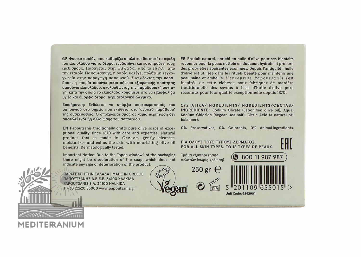 PAPOUTSANIS PURE OLIVE OIL SOAP – 2 PACK BOXED